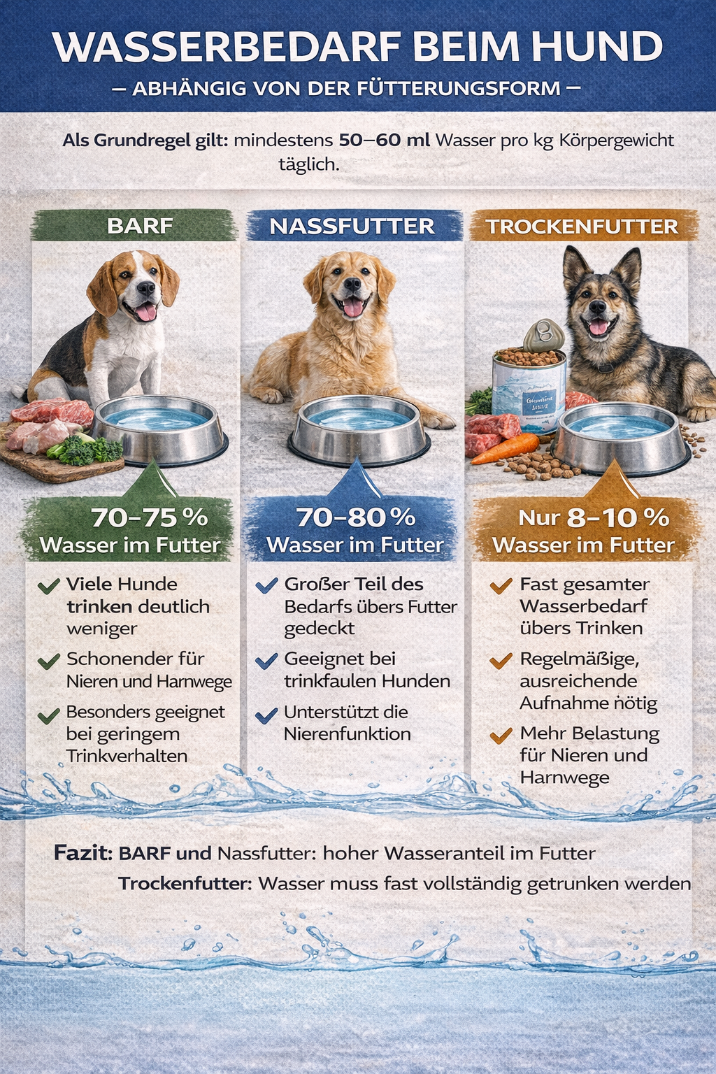 Wie viel ein Hund trinken sollte, hängt nicht nur vom Gewicht und Aktivitätslevel ab, sondern ganz entscheidend von der Fütterungsform.