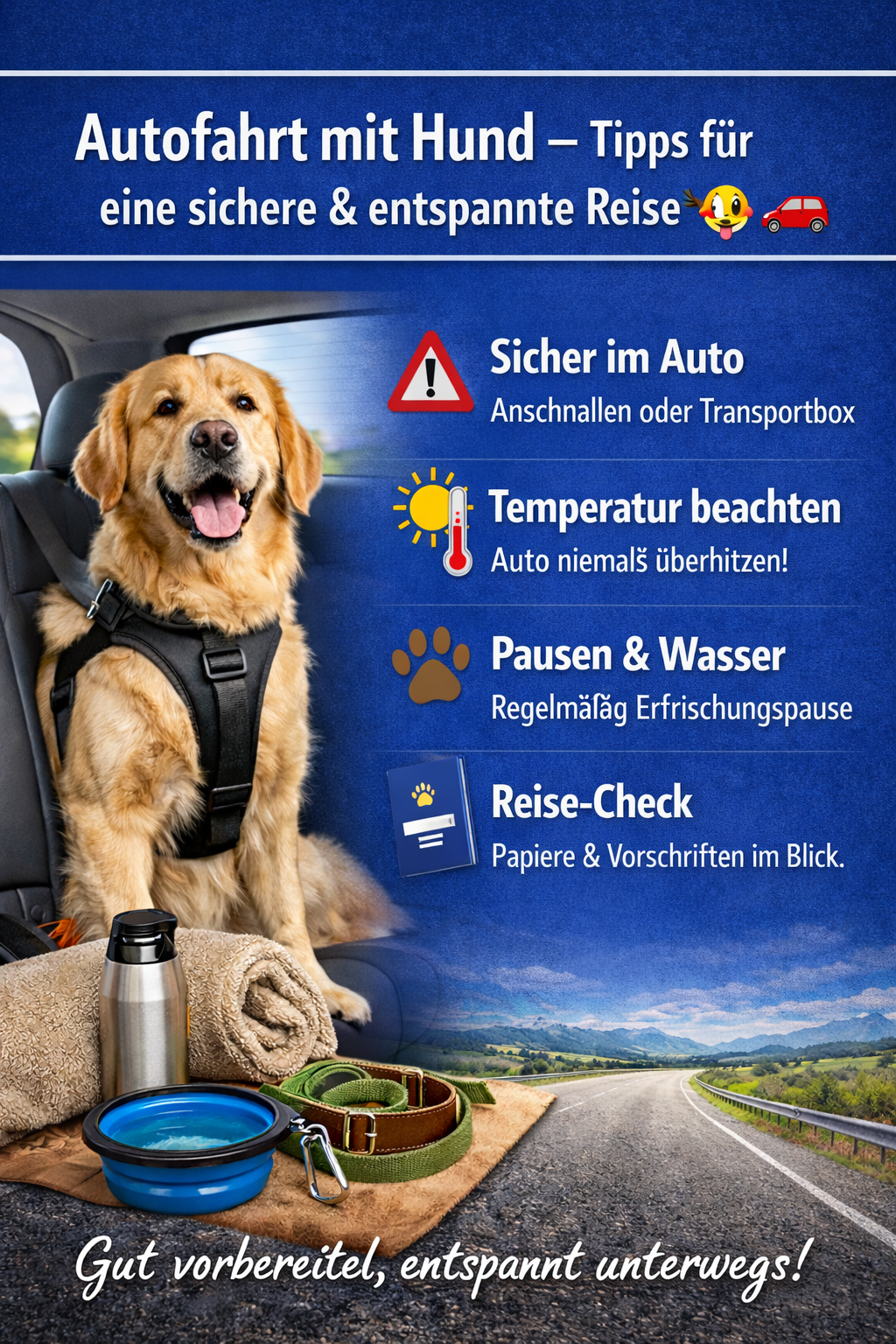 Eine Autofahrt mit Hund ist kein Problem – wenn Sicherheit, Temperatur und Wohlbefinden beachtet werden. Mit der richtigen Vorbereitung wird die gemeinsame Fahrt entspannt und sicher.