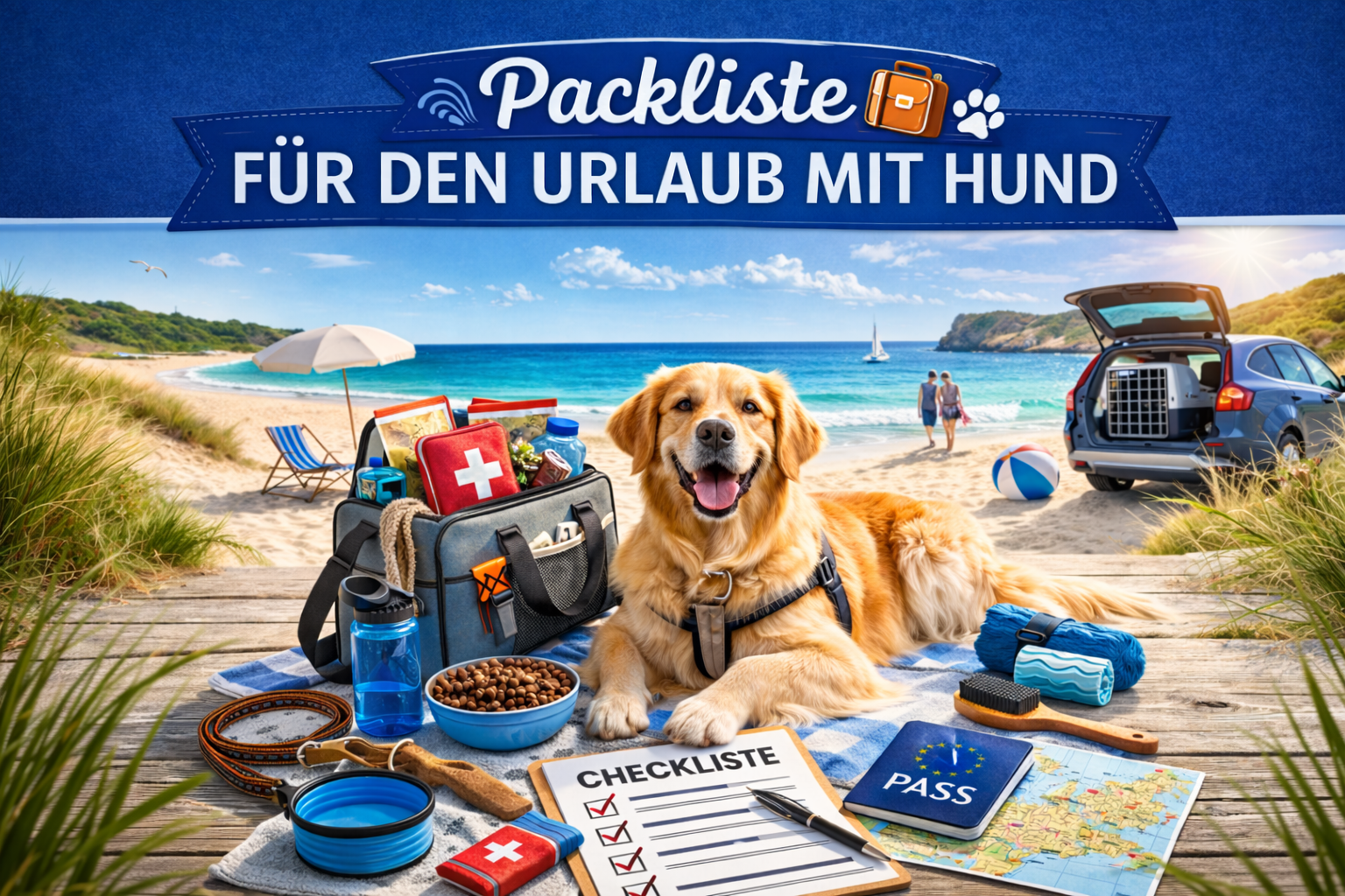 Hier findest du eine praktische Packliste für deinen Urlaub mit Hund – übersichtlich und zum Abhaken.