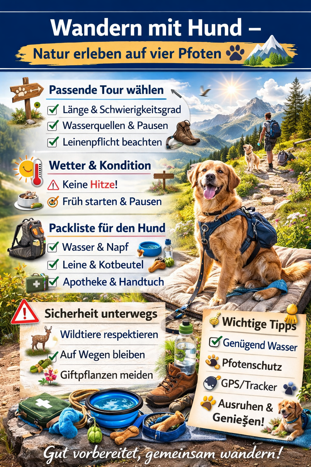 Wandern mit Hund verbindet Bewegung, Natur und gemeinsame Erlebnisse. Mit guter Planung, Rücksichtnahme und dem Blick für Sicherheit wird jede Tour zu einem besonderen Abenteuer.